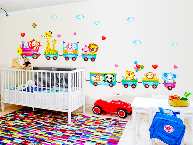 Auto-collant et décalque mural qui contient un train Multi couleur, ce modèle est parfait pour la décoration intérieure de la chambre de votre enfant.
